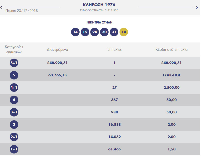 Ένας τυχερός στο τζόκερ κερδίζει 848.920,31 ευρώ